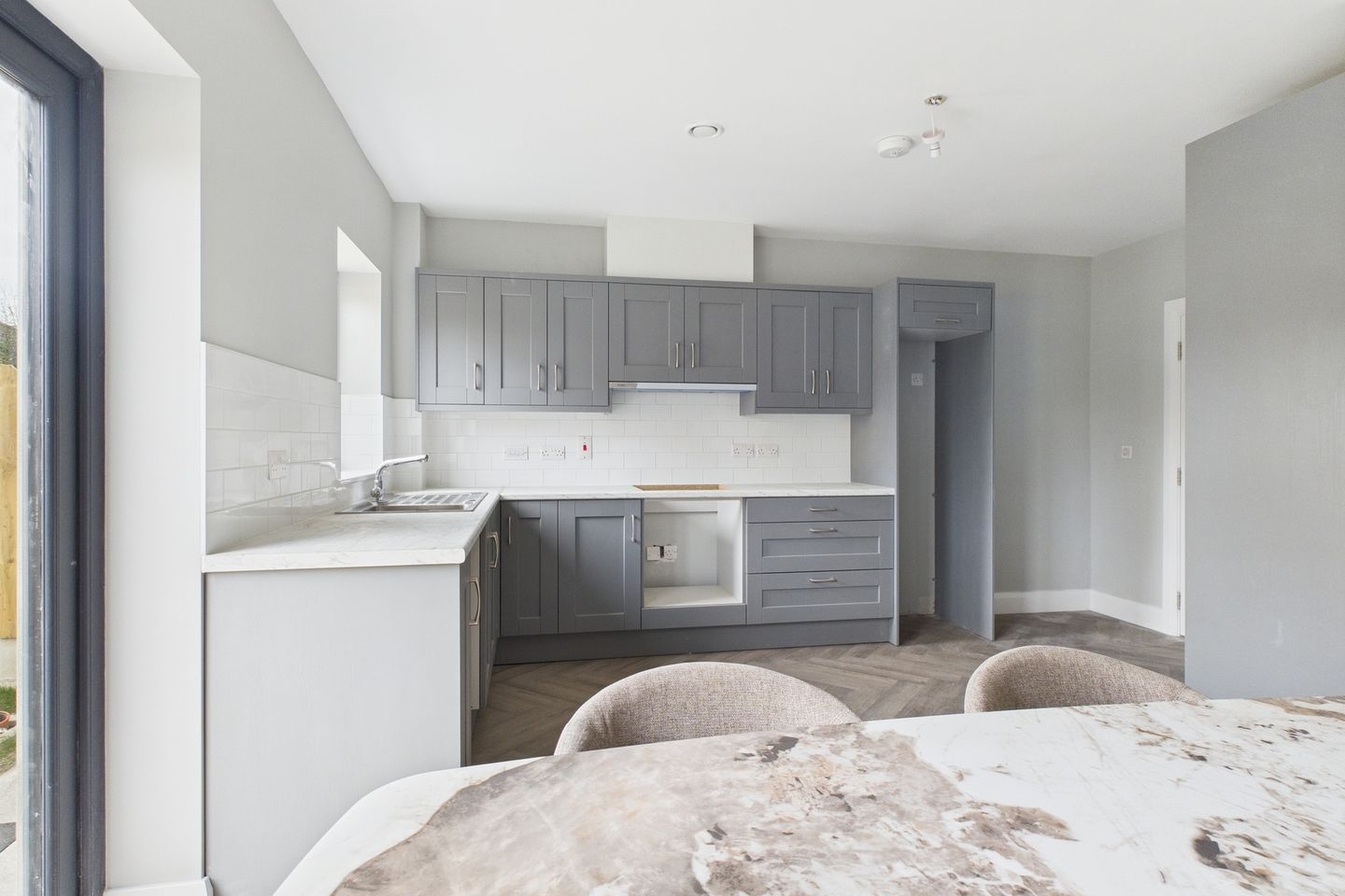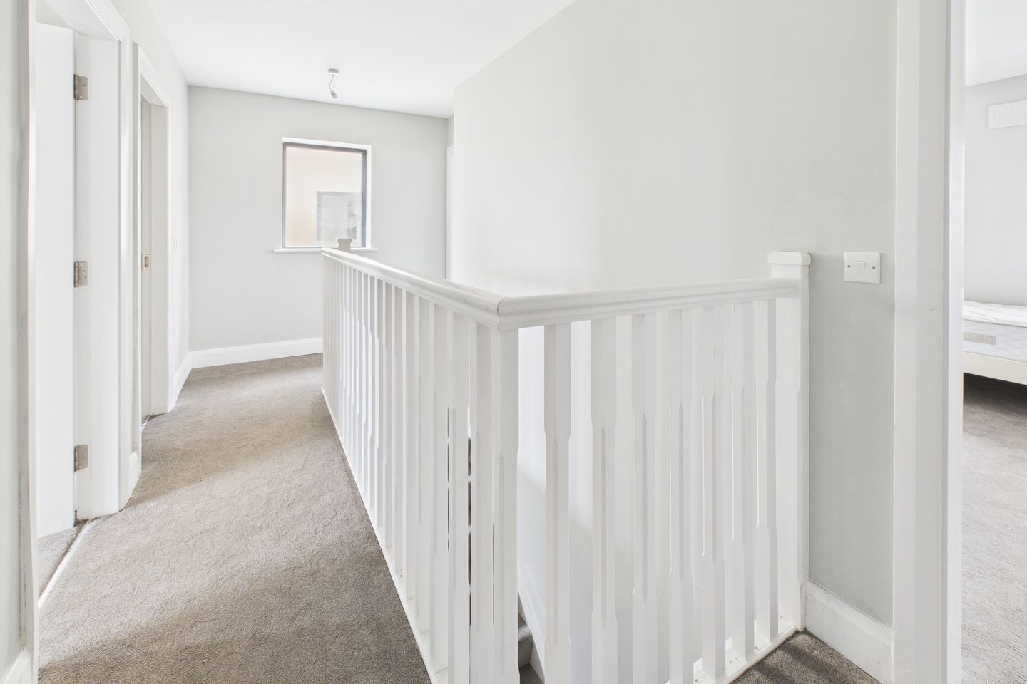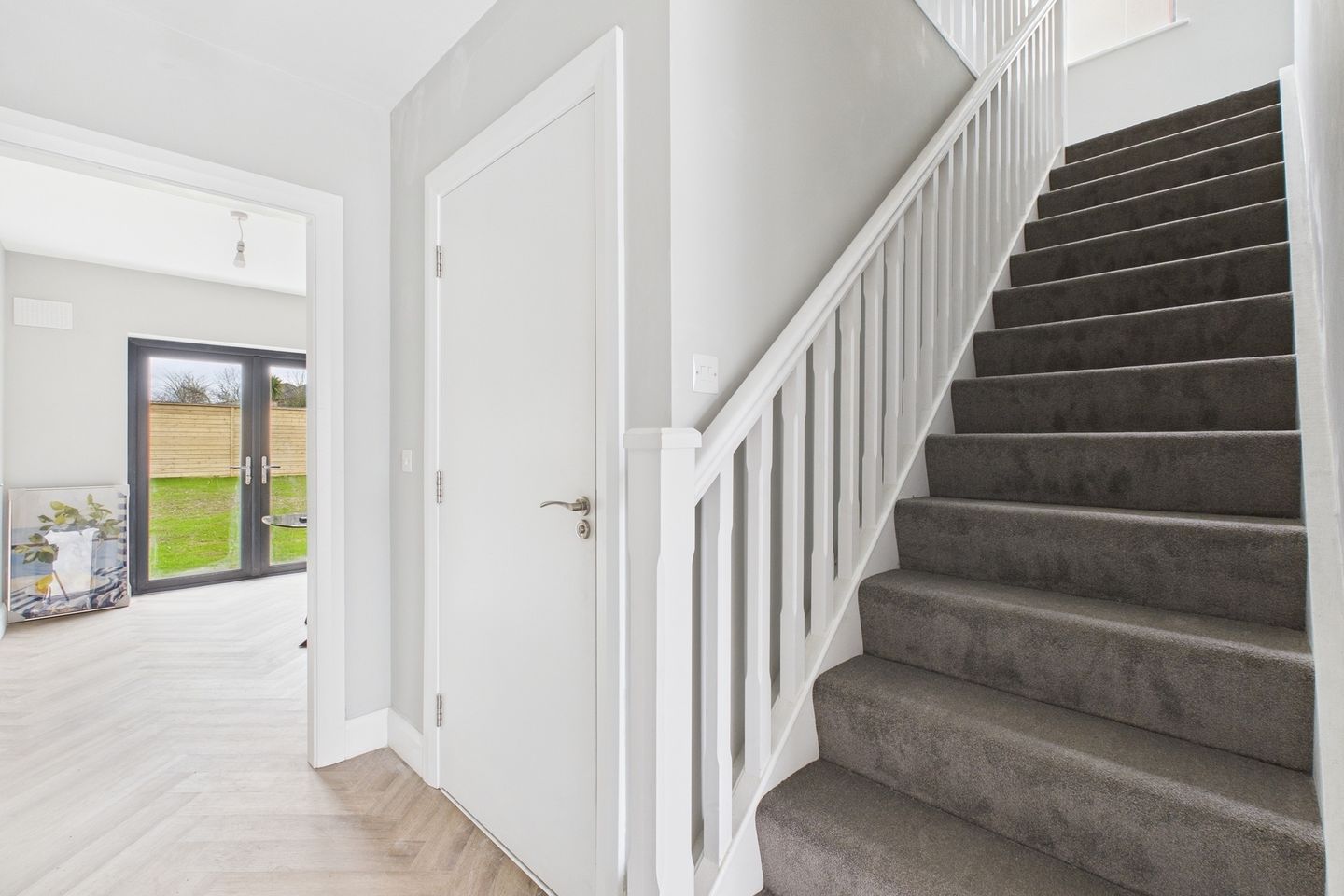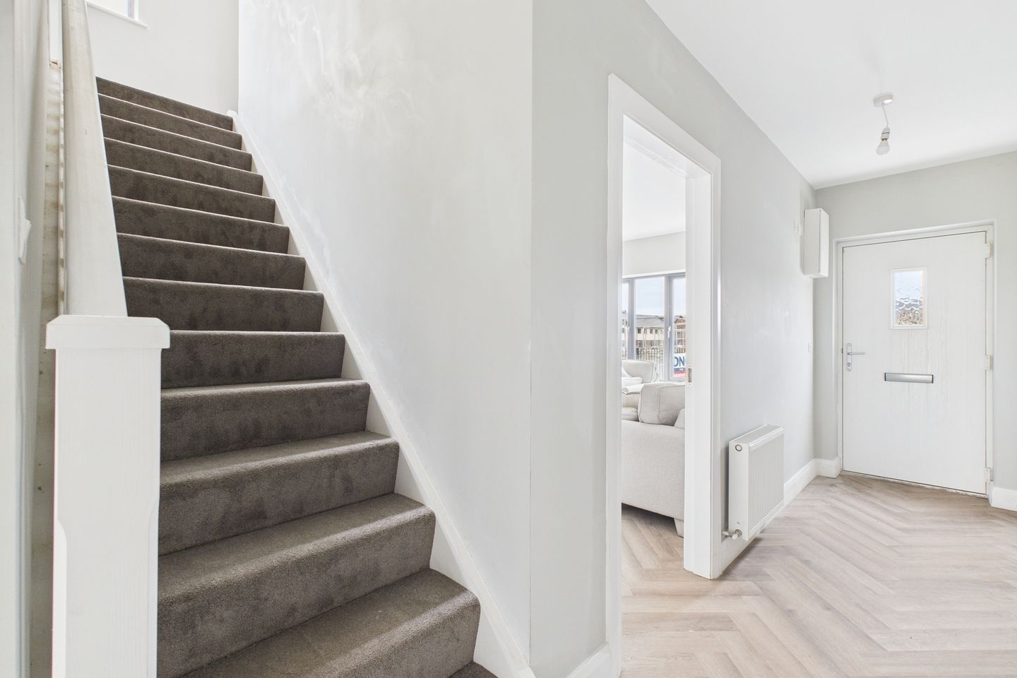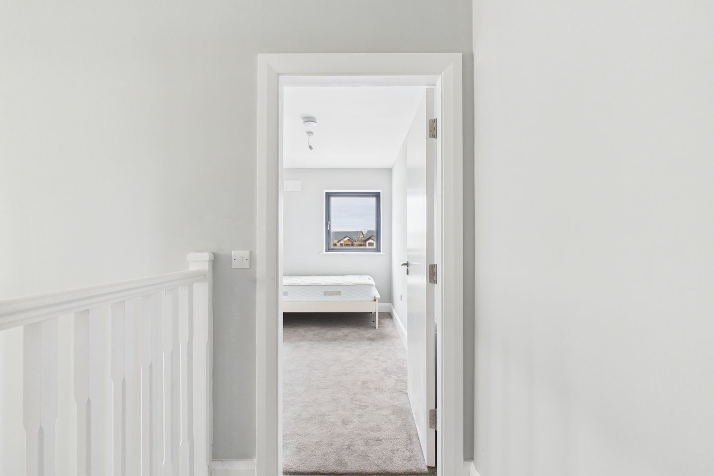 Painted in light grey with a staircase painted white with a timber handrail. Superb contemporary shaker-style painted kitchen Wardrobes in two bedrooms included. Bathroom floors and showers are tiled to wet area. Seeded garden with boundary wall/fence to rear gardens.