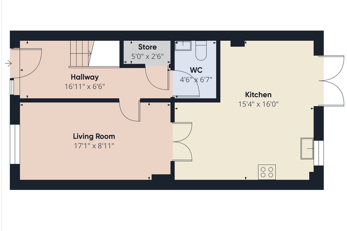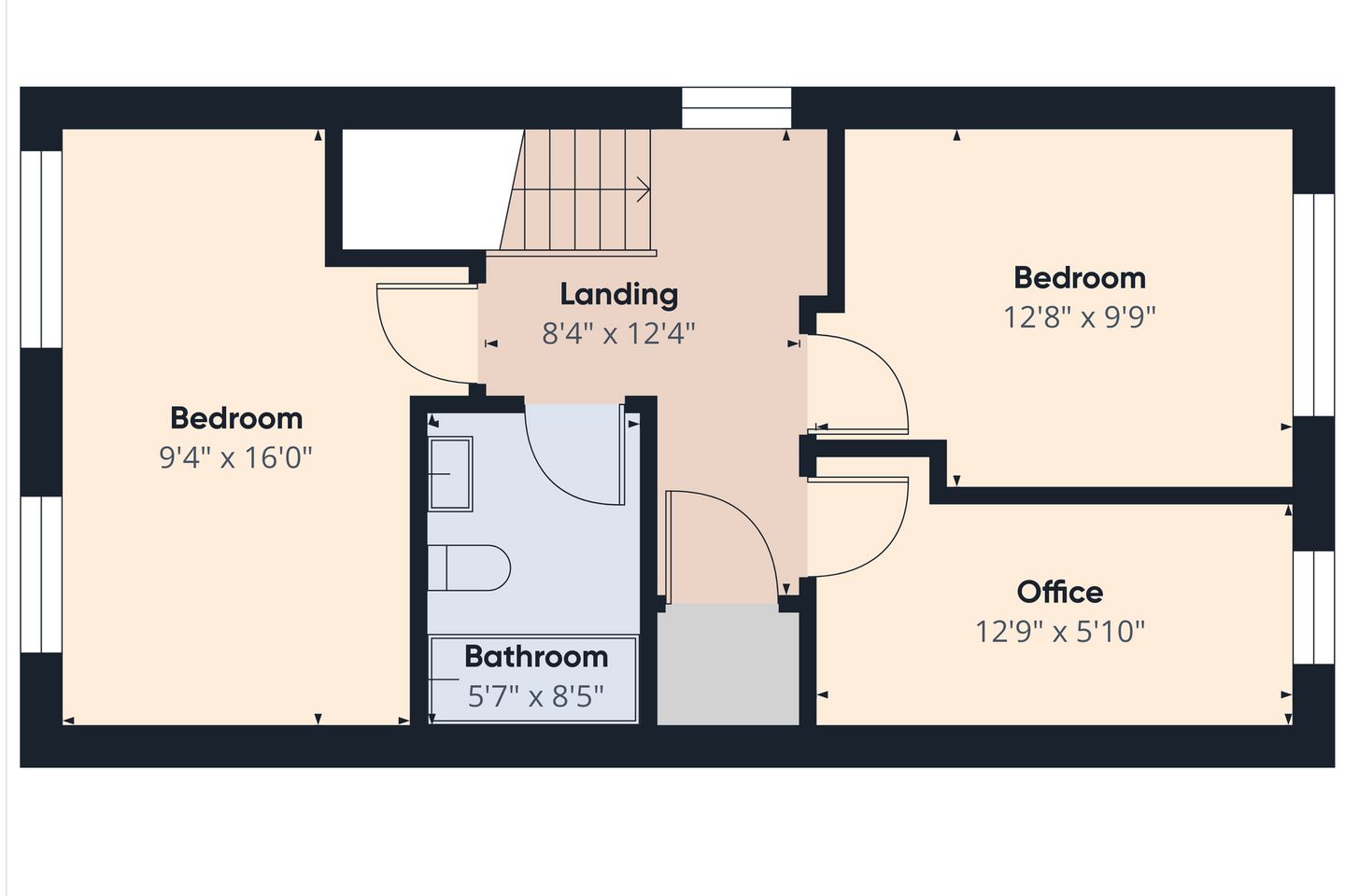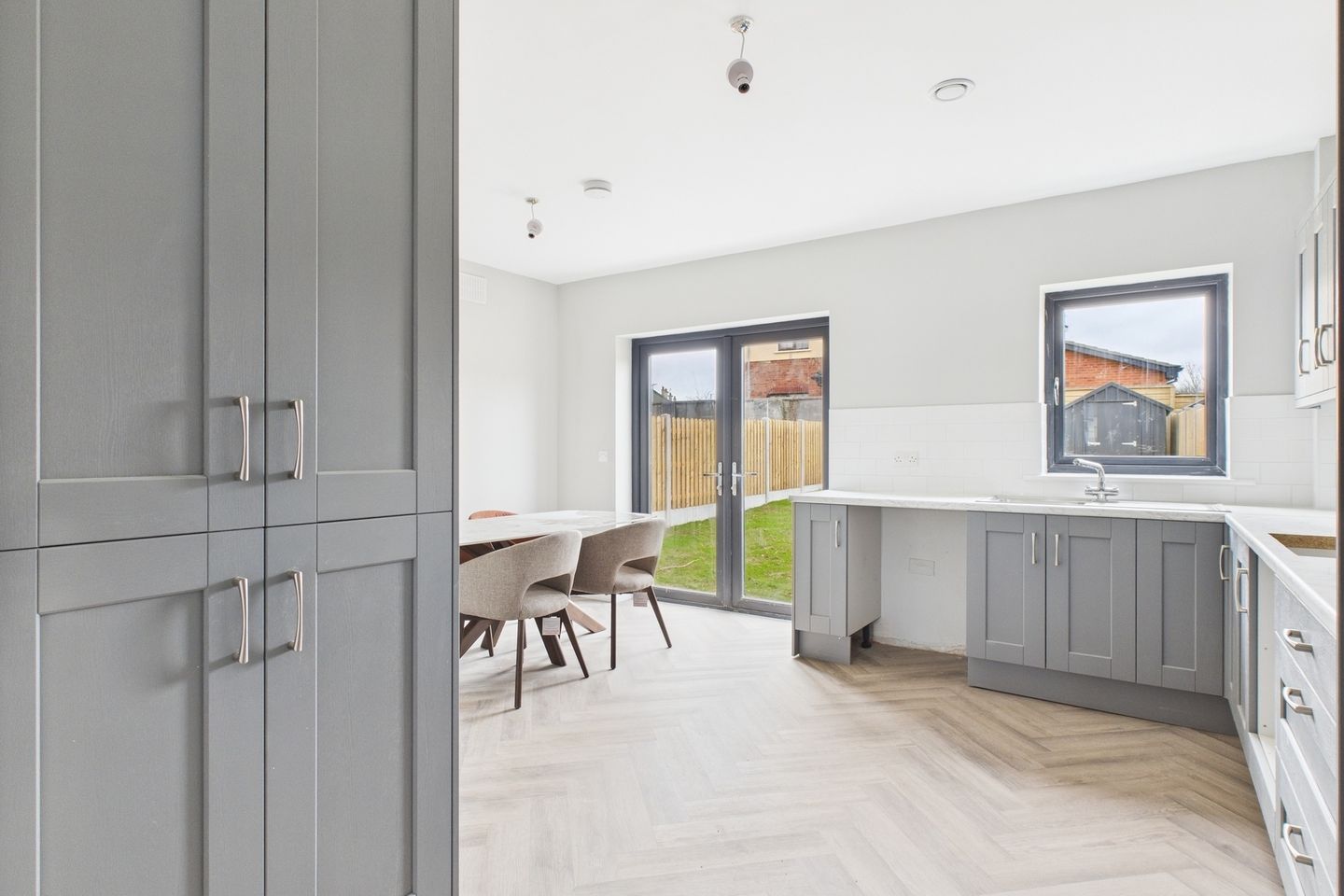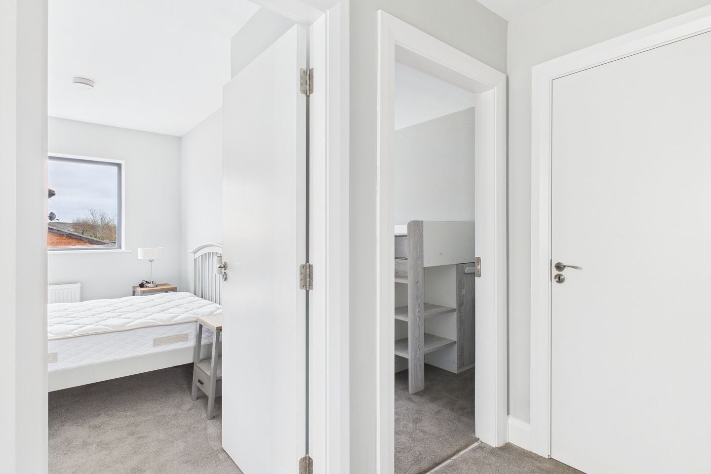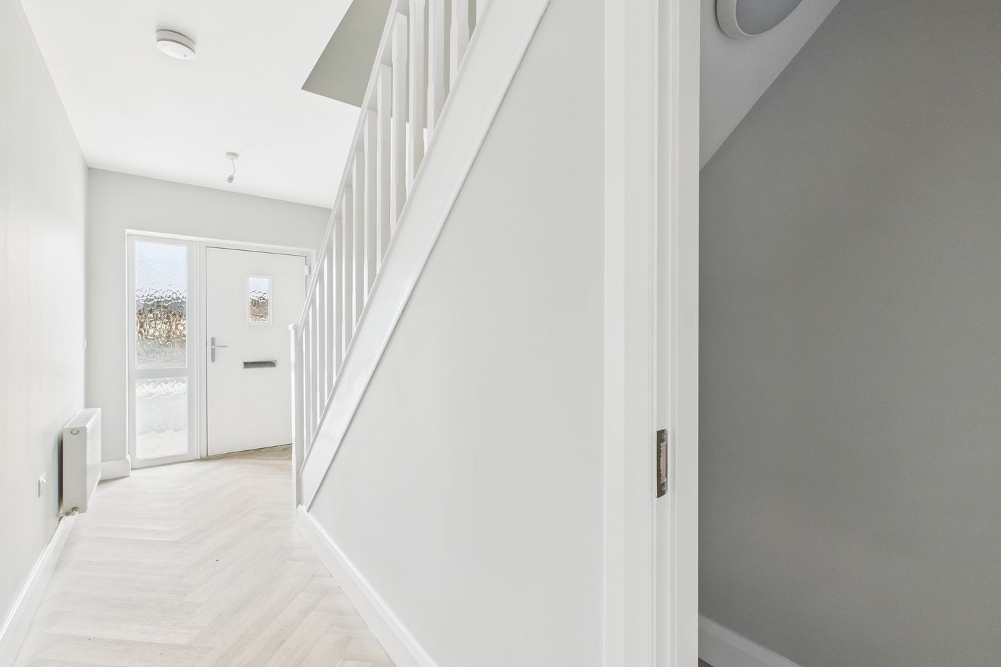 Painted in light grey with a staircase painted white with a timber handrail. Superb contemporary shaker-style painted kitchen Wardrobes in two bedrooms included. Bathroom floors and showers are tiled to wet area. Seeded garden with boundary wall/fence to rear gardens.